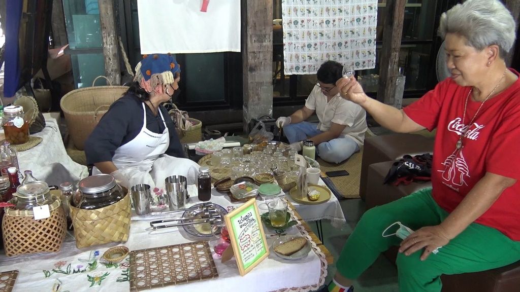 สโลบาร์ ขนมกลีบลำดวนแป้งข้าวสังข์หยด จาก “โรงคั่วกาแฟบ้านป่า "บรั่นดองหนองโอน" เครื่องดื่มหมักดองแบบท้องถิ่น ของดีกับสุขภาพ Workshop "กระจูดคราฟท์ ท่าช้าง" และช้อปกระจูดแฟชั่นจาก "ทวีสุข"