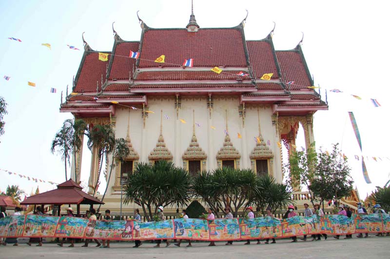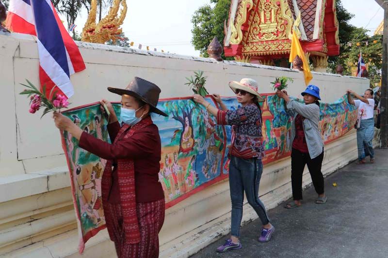 ชาวบ้านตูม ตำบลบัวบาน อำเภอยางตลาด จังหวัดกาฬสินธุ์ กราบไหว้สิ่งศักดิ์สิทธิ์ พร้อมประกอบพิธีอัญเชิญพระอุปคุต อธิษฐานขอความร่มเย็นเป็นสุข ผ่านพ้นภัยแล้ง และร่วมกันแห่ผ้าผะเหวดแบบโบราณ ก่อนเริ่มงานบุญมหาชาติ เพื่อสืบสานงานประเพณีบุญเดือน 4 ตามฮีตสิบสองคองสิบสี่