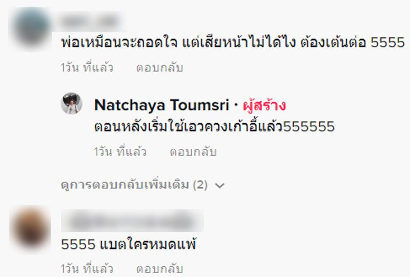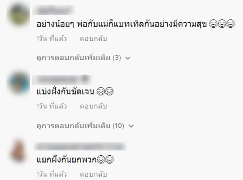" พ่อคือคนที่อ้วนๆ ถอดเสื้อห้อยพระ ส่วนแม่เสื้อขาวกางเกงชมพู เกลียดกันไม่คุยกันมาเกือบ 10 ปี เรื่องนี้ยอมกันไม่ได้จริงๆ 555555555 " ขณะที่ชาวเน็ตยังเข้าแสดงจำนวนมาก