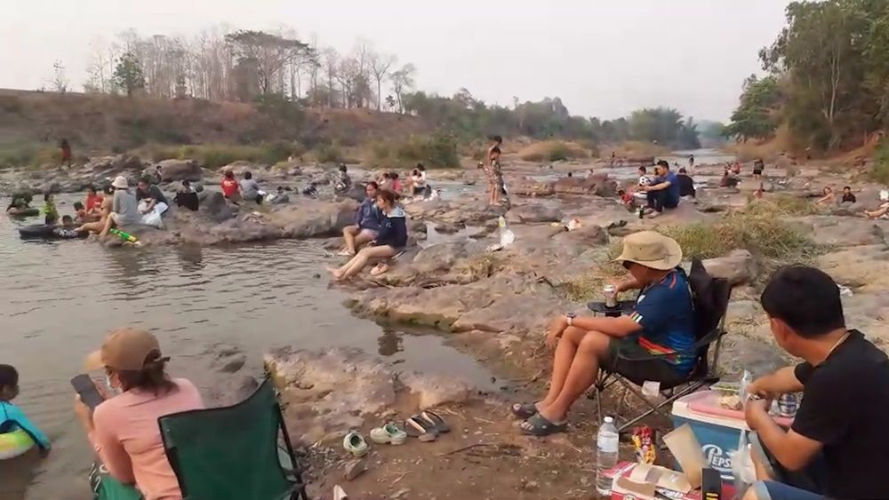 ช่วงนี้ทุกพื้นที่ของจังหวัดเลยอากาศร้อนอุณหภูมิสูงตั้งแต่ 38-40 องศาฯและมีแนวโน้มจะสูงขึ้นอีกเนื่องจากก้าวเข้าสู่เดือนเมษายน ซึ่งจะเป็นช่วงที่อากาศร้อนสุดในแต่ละปี และอากาศที่ร้อนระอุเช่นนี้ในพื้นที่จังหวัดเลยมีแหล่งท่องเที่ยวให้คลายร้อนที่หลายคนนิยมไปกันคือเล่นน้ำตามแหล่งน้ำตกต่างๆ รวมทั้งในแม่น้ำ โดยเฉพาะในอำเภอท่าลี่ จังหวัดเลย นักท่องเที่ยวหนุ่มสาวจะนิยมไปเที่ยวกันคือแก่งโตน เพื่อเล่นน้ำคลายร้อนซึ่งเป็นแนวแม่น้ำชายแดนระหว่างไทย-ลาว