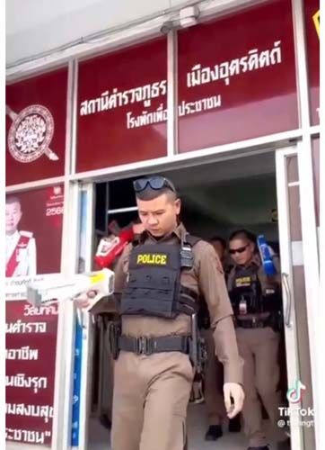 ชาวโซเชียลฮือฮา ! ตร.สภ.เมืองอุตรดิตถ์ แต่งกายสวมใส่ชุดเครื่องแบบเต็มยศ โชว์ถือปืนฉีดน้ำทำคลิบลง Tiktok ชวนคนไทยเล่นน้ำสงกรานต์ให้สนุก สร้างความมั่นใจและดูแลความปลอดภัยให้กับประชาชนในพื้นที่