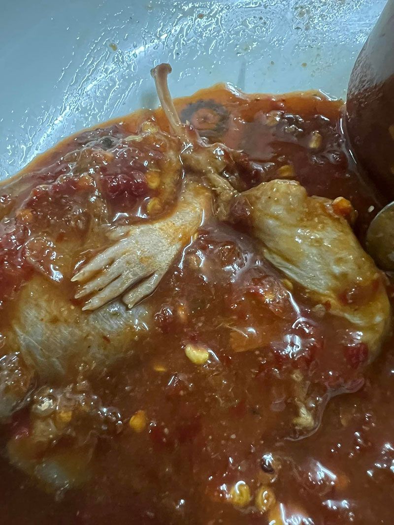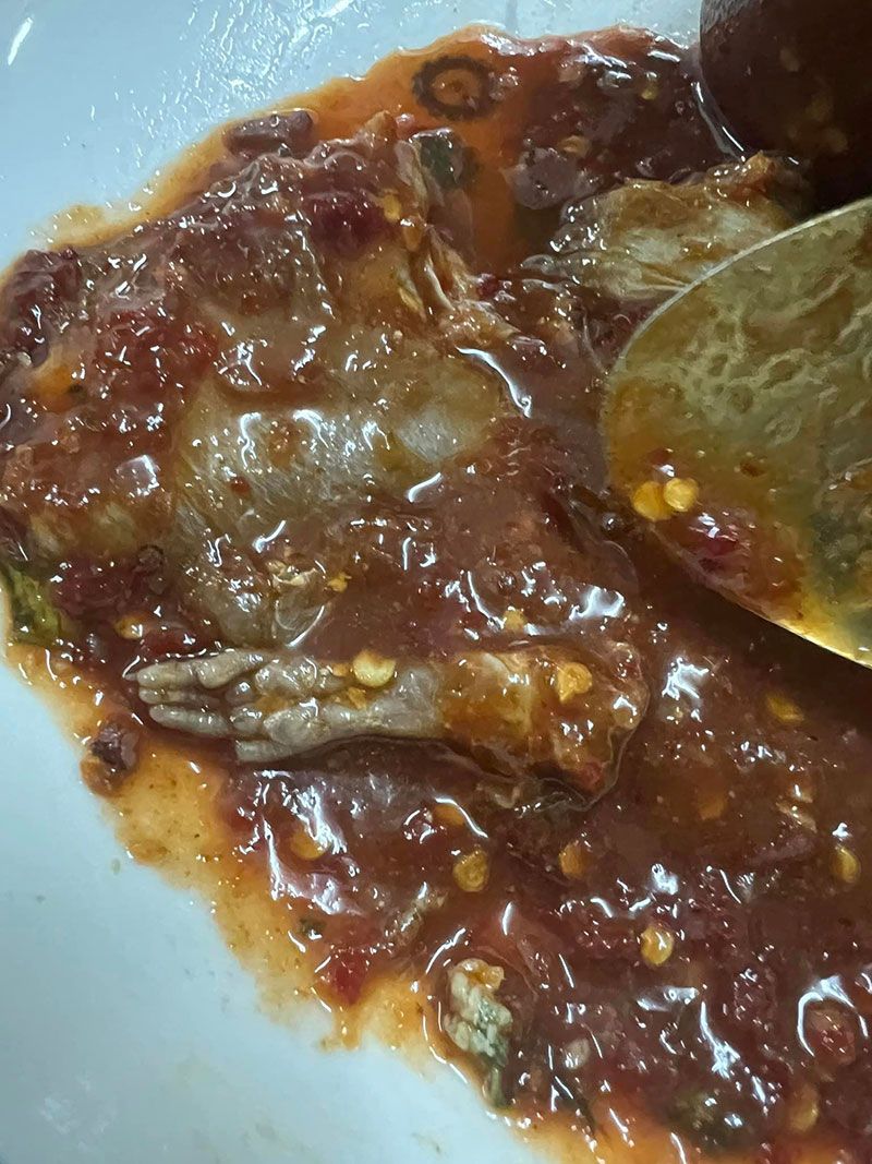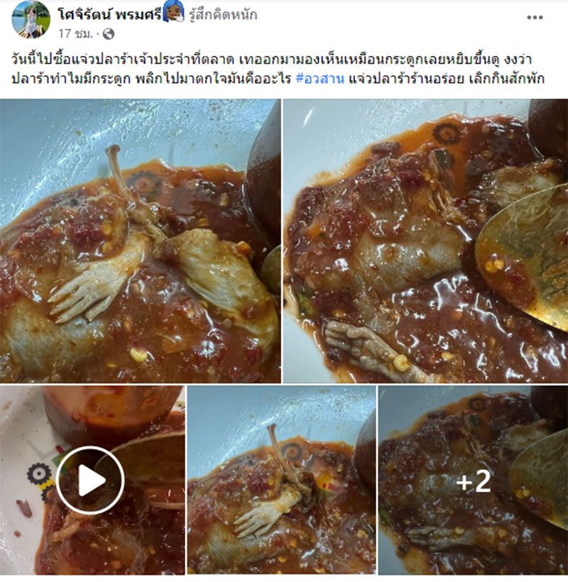 วันที่ 3 เมษายน 2566 ผู้ใช้เฟซบุ๊ก โศจิรัตน์ พรมศรี ได้โพสต์คลิปและรูปภาพแจ่วปลาร้า พร้อมข้อความว่า "วันนี้ไปซื้อแจ่วปลาร้าเจ้าประจำที่ตลาดระเบาะไผ่ เทออกมามองเห็นเหมือนกระดูกเลยหยิบขึ้นดู งงว่าปลาร้าทำไมมีกระดูก พลิกไปมาตกใจมันคืออะไร #อวสาน แจ่วปลาร้าร้านอร่อย เลิกซื้อร้านนี้อีกต่อไป"