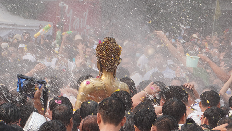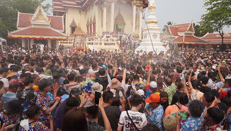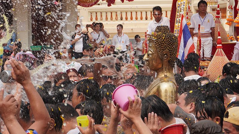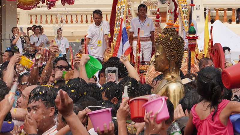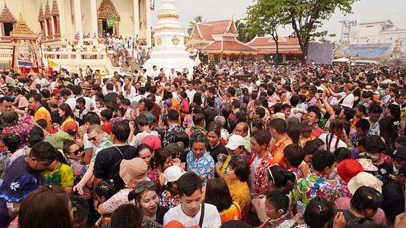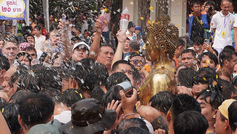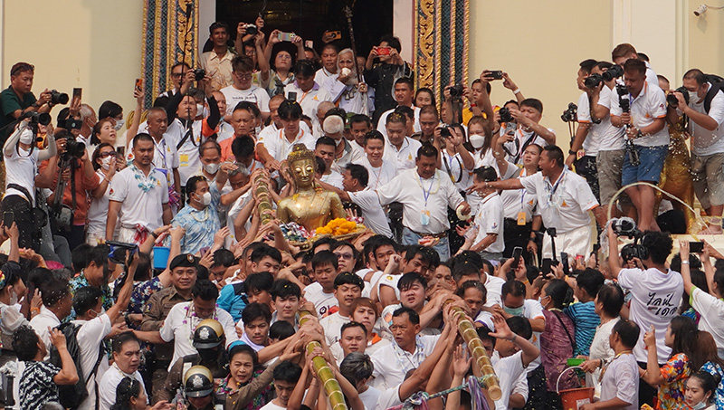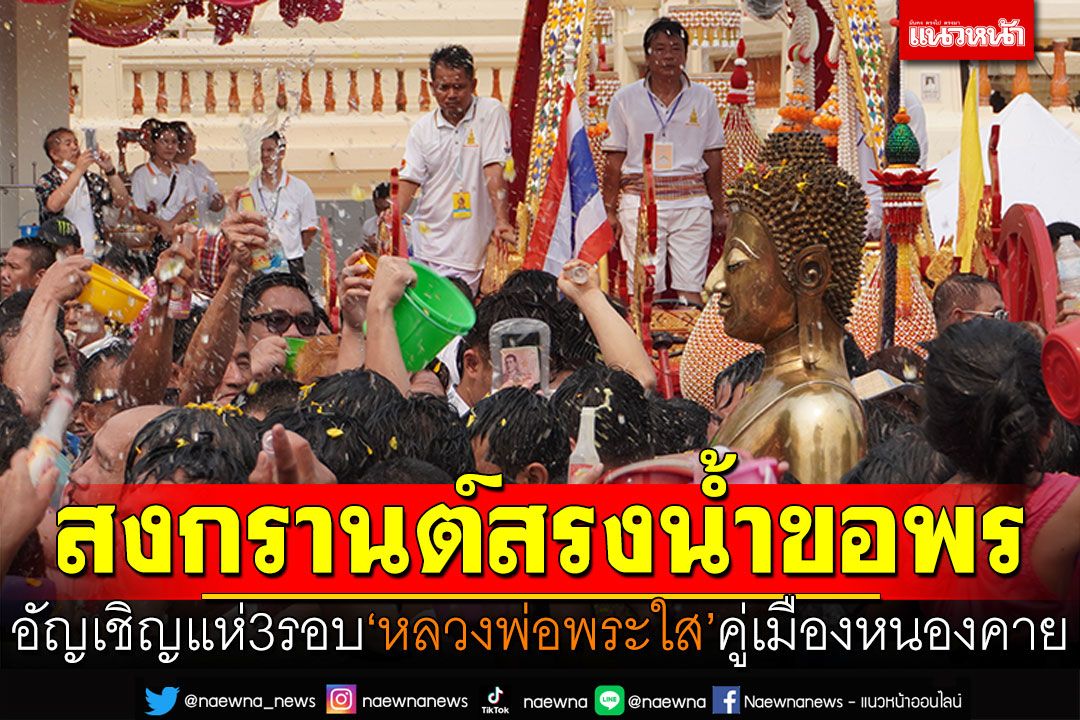 มหาชนชาวหนองคายร่วมกันอัญเชิญหลวงพ่อพระใส พระพุทธรูปศักดิ์สิทธิ์คู่บ้านคู่เมือง ลงจากพระอุโบสถ แห่ 3 รอบ พร้อมแห่รอบเมืองให้ประชาชนรดสรงน้ำขอพรในงานมหาสงกรานต์อีสานหนองคาย