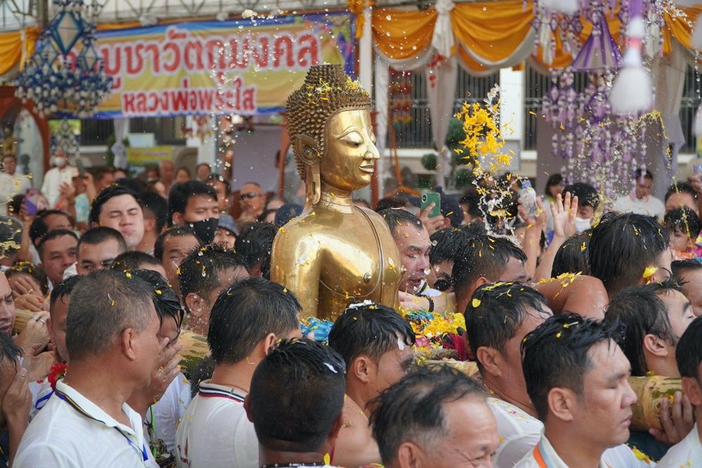 ทั้งนี้ ทุกปีชาวหนองคายจะประกอบพิธีอัญเชิญหลวงพ่อพระใสลงจากพระอุโบสถ แห่รอบพระอุโบสถและแห่รอบเมือง เพื่อเปิดโอกาสให้ประชาชน พุทธศาสนิกชนชาวหนองคาย ได้รดสรงน้ำขอพรในช่วงเทศกาลสงกรานต์ ก่อนจะประดิษฐานที่ศาลาพลับพลาไปจนถึงวันที่ 18 เม.ย. ให้ประชาชนได้มีโอกาสรดสรงน้ำอย่างใกล้ชิด จากนั้นได้แห่พระใสรอบพระอุโบสถ 3 รอบ ระหว่างนั้นชาวหนองคายก็ยังรดสรงน้ำอย่างต่อเนื่อง และเมื่อครบแล้วก็ได้อัญเชิญขึ้นประดิษฐานบนที่ประทับในพระอุโบสถ โดยมีการทำความสะอาด ขัดเงา องค์หลวงพ่อพระใสให้เงางามตามเดิม ซึ่งมีประชาชนชาวหนองคายมาร่วมพิธีเป็นจำนวนมาก - 003