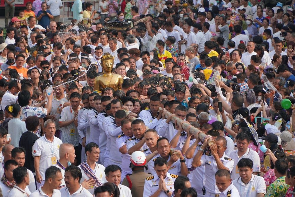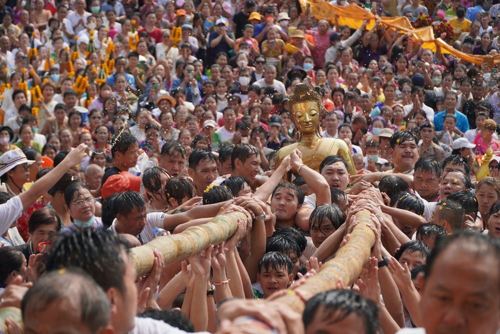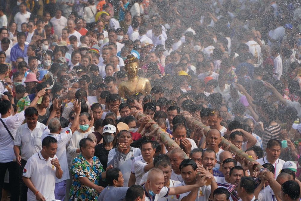 ชาวหนองคาย นักท่องเที่ยว แห่ร่วมขบวนอัญเชิญ "หลวงพ่อพระใส" พระพุทธรูปศักดิ์สิทธิ์คู่บ้านคู่เมือง กลับขึ้นประดิษฐานบนพระอุโบสถ ปิดงานสงกรานต์ปี 66