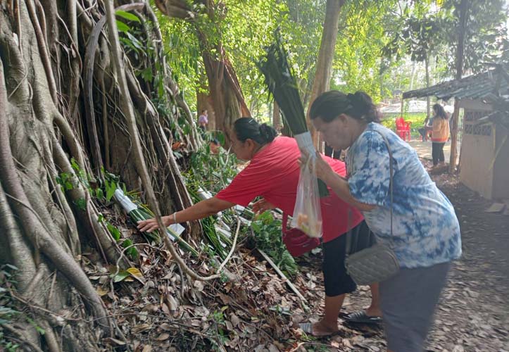 วันที่ 17 พฤษภาคม 2566 ที่บริเวณดอนปู่ตาหรือปู่หอเหนือ บ้านตูม หมู่ 4 และหมู่ 19 ต.บัวบาน อ.ยางตลาด จ.กาฬสินธุ์ ชาวบ้านทั้ง 2 หมู่บ้านนำโดยนางละมุล ภักดีนอก ผญบ.หมู่ 4 และนายสเตทฉัน ภูนาสูง ผญบ.หมู่ 19 พร้อมด้วยนายบรรเจิด สุธรรมมา พ่อขะจ้ำประจำหมู่บ้าน นำชาวบ้านประกอบพิธีบวงสรวงปู่หอเหนือและสิ่งศักดิ์สิทธิ์ ซึ่งเป็นการประกอบพิธีประจำปี ตามฮีต 12 คอง 14 ในช่วงก่อนที่จะลงมือทำนา และการเกษตรกรรม เลี้ยงกุ้งก้ามกราม ซึ่งเป็นอาชีพหลักของชุมชน