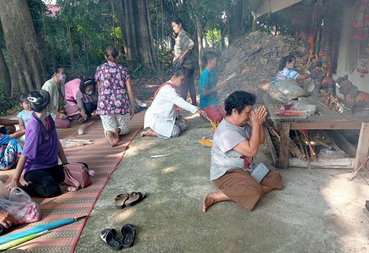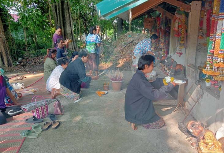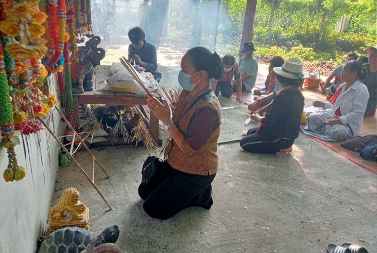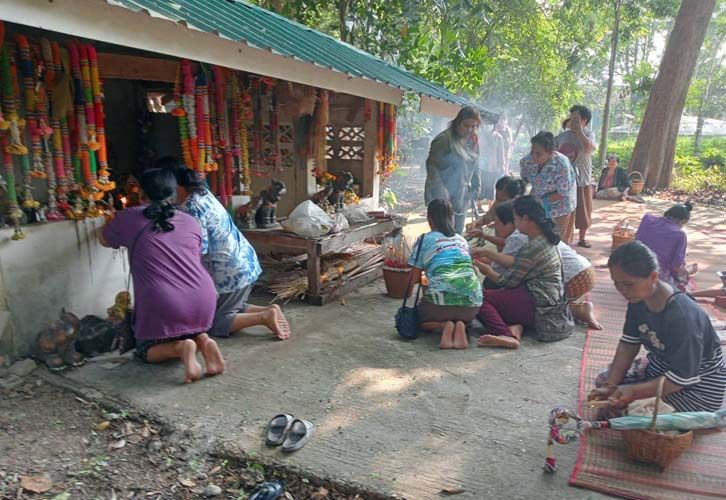อย่างไรก็ตาม ในพิธีบวงสรวงปู่หอเหนือ นอกจากชาวบ้านจะอธิษฐาน ขอความเป็นสิริมงคลต่อตนเองและครอบครัวแล้ว ยังบนบานต่อพญาแถน ดลบันดาลให้ฝนตกต้องตามฤดูกาล เพื่อที่จะได้มีน้ำสำหรับทำนาและเลี้ยงกุ้งก้ามกรามซึ่งเป็นอาชีพหลักของชุมชน และได้ผลผลิตบริบูรณ์ ไม่ประสบสาธารณภัยทั้งปวง ไม่เกิดโรคประจำถิ่นหรือติดต่อร้ายแรงอย่างเช่น โควิด-19 เหมือนที่ผ่านมา รวมทั้งยังอธิษฐานต่อพระสยามเทวาธิราช ขอให้ได้รัฐบาลใหม่ที่กำลังจัดตั้งเป็นไปอย่างราบรื่น สมานฉันท์ เพื่อเข้ามาบริหารประเทศชาติเจริญรุ่งเรืองอีกด้วย.-008