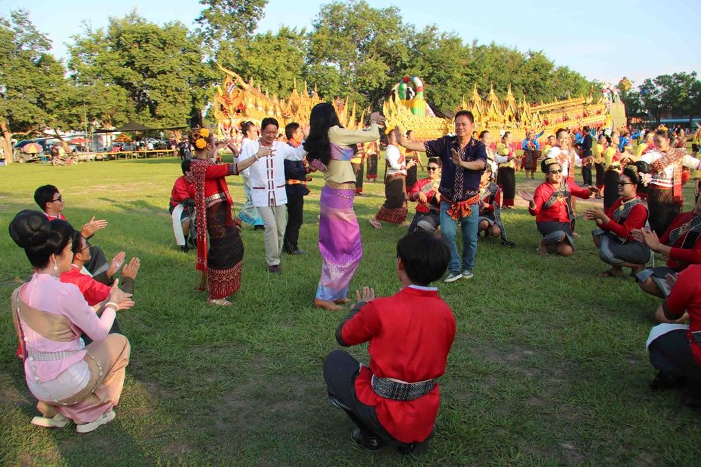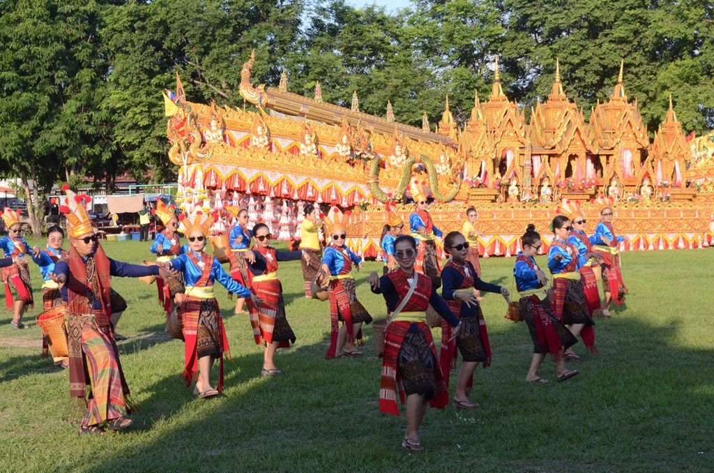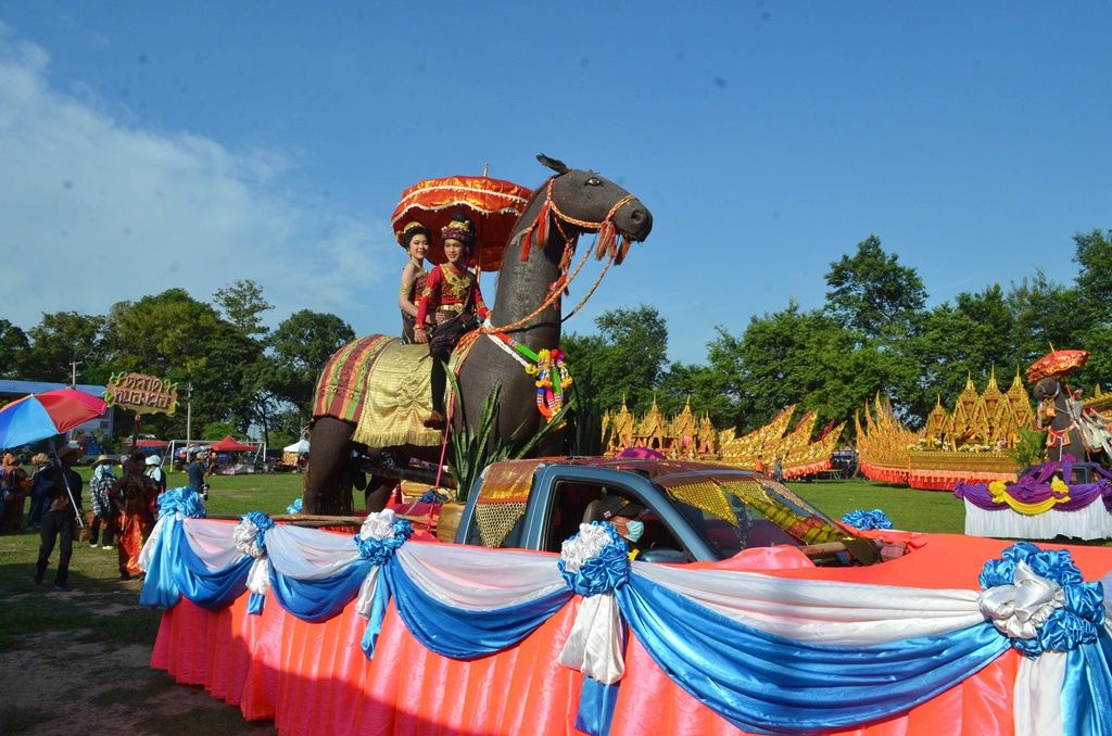 โดยขบวนแห่ยาวเหยียดทั้ง 7 ขบวน สีสันอยู่ที่การจัดริ้วขบวนแห่บั้งไฟอย่างยิ่งใหญ่อลังการ แสดงตำนานผาแดง-นางไอ่ มีการเซิ้งบั้งไฟ การแสดงวิถีชีวิตชุมชน รำบวงสรวงพญาแถน และร่วมฟ้อนรำ บรรยากาศเป็นไปด้วยความสนุกสนาน