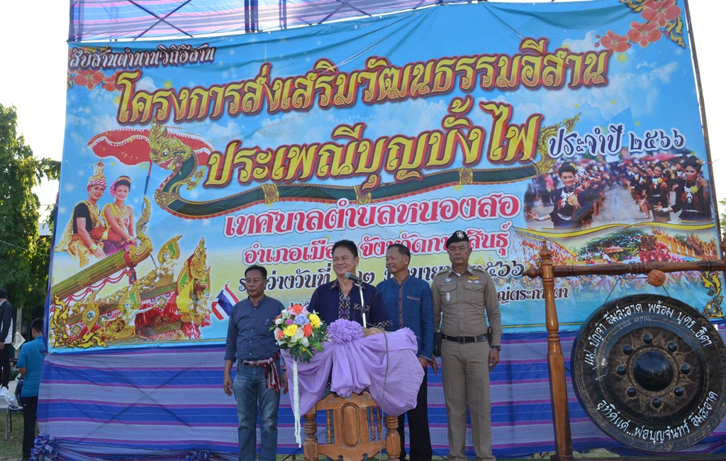 ที่สนามกีฬาโรงเรียนชุมชนหนองวิทยาคาร เทศบาลตำบลหนองสอ อ.เมือง จ.กาฬสินธุ์ นายวิรัช พิมพ์พะนิตย์ ว่าที่ ส.ส.กาฬสินธุ์ เขต 1 พรรคเพื่อไทย เป็นประธานจัดงานประเพณีบุญบั้งไฟประจำปี 2566 โดยมีนายจตุรพล อุ่นสถิตย์ นายกเทศมนตรีตำบลหนองสอ พร้อมด้วยส่วนราชการ สมาชิกสภาเทศบาลตำบลหนองสอ ผู้นำชุมชน ผู้บริหารสถานศึกษา ประชาชนและ เยาวชน ร่วมกันจัดขึ้น เพื่อสืบสานวัฒนธรรมประเพณีอันดีงาม ตามฮีต 12 คอง 14