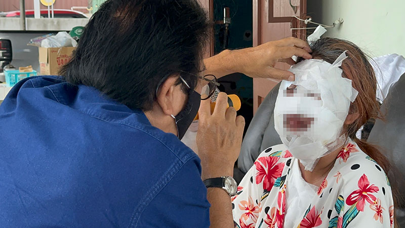 ต่อมานายแพทย์ทศพร เสรีรักษ์ ว่าที่ สส.จ.แพร่ เขต1 ได้เดินทางมาดูอาการบาดเจ็บของ น.ส.สุชาดา โดยตรวจดวงตาทั้งสองข้าง พบว่ายังสามารถมองเห็นได้ปกติ แต่ต้องรอให้อาการบวมตามผิวหนังลดลงก่อน พร้อมยืนยันว่าดวงตาไม่ได้รับการกระทบกระเทือน พร้อมให้ยาหยอดตาไว้ไข้บรรเทาอาการระคายเคือง ก่อนจะเดินทางกลับไป.012