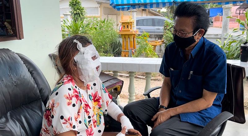 เจ้าถิ่นรุ่นใหญ่สุดเถื่อน ตะโกนลั่นทำให้เสียชื่อหมู่บ้าน ยกเก้าอี้ปรี่จะฟาดแม่สาวท้อง ขณะไปขายน้ำริมสนามบอล ด้าน นพ.ทศพร ว่าที่ สส.เพื่อไทย จ.แพร่ เดินทางมาเยี่ยมพร้อมตรวจบาดแผลให้สาวท้อง ผกก.ระยอง ยันให้ความเป็นธรรม