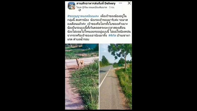6 มิถุนายน 2566 จากกรณีได้มีชาวบ้านได้ลงเฟสบุ๊ครายหนึ่งได้โพสต์ตามหาเจ้าของหมา จับใจความว่า 'น้องรอเจ้าของมารับค่ะรอมา 2 เดือนแล้วค่ะ เจ้าของคือโลกทั้งใบของเขานะ น้องยืนรอแบบนี้ทั้งวัน ตลอดระยะเวลา2เดือนน้องไม่ยอมไปไหนเลยรออยู่แบบนี้ ไม่แน่ใจน้องหล่นจากรถหรือเจ้าของเอาน้องมาทิ้ง พิกัดถนนสายบ้านเขาผาแรด ตำบลน้ำรอบ อำเภอลานสัก จังหวัดอุทัยธานี'