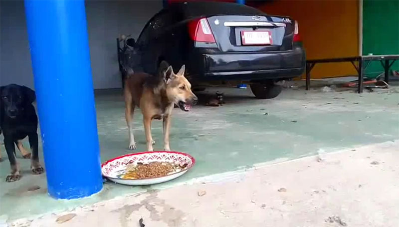 แต่เพิ่งมาสังเกตเห็นว่าเจ้าหลงกำลังนอนอยู่และมีลูกแมวกำลังนอนดูดนมเจ้าหลง โดยที่เจ้าหลงไม่ได้มีอาการดุร้ายแต่อย่างใด ซึ่งเจ้าหลงจะคอยดูแลลูกแมวตัวนี้เหมือนลูกมันเองด้วย เวลามีหมาตัวอื่นเข้ามาใกล้แมว เจ้าหลงจะขู่ไม่ให้ตัวอื่นเข้ามาใกล้ด้วย.012