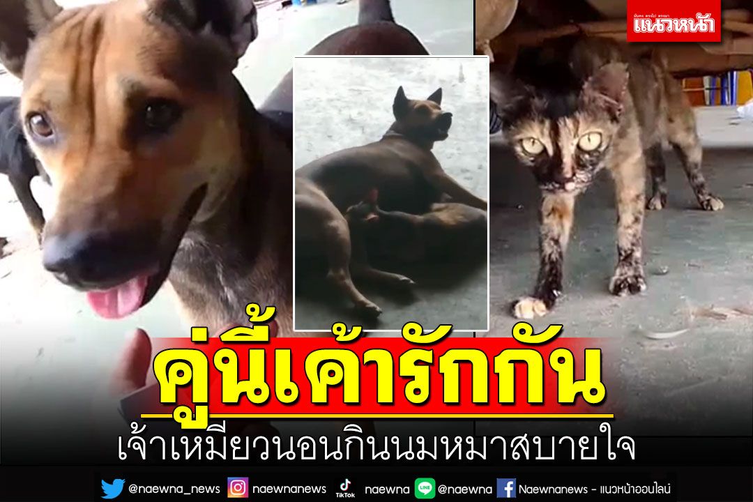 15 มิถุนายน 2566 น่าเอ็นดูความน่ารักของสัตว์ เมื่อแมวเหมียว อายุ 2 ปี ชื่อเจ้ากระตัง ได้เข้าไปนอนกินนมสุนัขแม่ลูกอ่อน อายุ 3 ปี ชื่อเจ้าหลง โดยทั้งคู่เป็นหมาแมวที่สนิทกัน