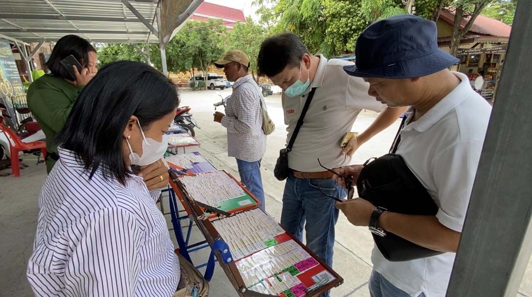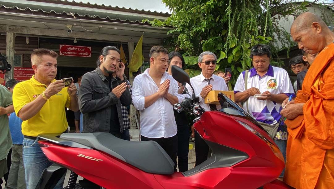 หลังจากที่หลวงพ่อรวย ปลุกเสกเสร็จ “เฟิร์ส เปิดตำนาน” พร้อมด้วย คณะก๊อปปี้โชว์ ประกอบด้วย เฮียชูวับ, เสก โซโล, ตูน บอดี้สลัม, และ พลพลก๊อบปี้ และ ทีมงานผู้จัดสร้าง ได้นำเหรียญที่เพิ่งปลุกเสกเสร็จจำนวน 100 เหรียญ ไปแจกให้กับผู้ศรัทธา ที่มายืนรอรับหน้ากุฎิเจ้าอาวาส แจกจำนวนมาก หลังจากรับเหรียญชาวบ้านไม่พลาดส่องเลขขันน้ำมันต์ และนำเลข 66 และเลขทะเบียนรถจยย. 52, 48, 524 และ 248 ที่หลวงพ่อรวยเจิมนำไปเสี่ยงโชคหวังได้โชคได้ลาภจนเลขเกลี้ยงแผง
