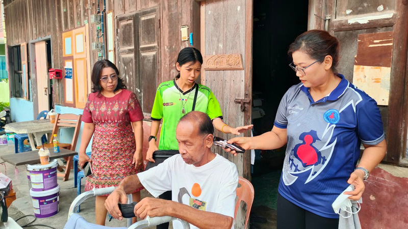 นอกจากนี้ ยังมีทีมจิตอาสา อสม. ซึ่งใกล้ชิดกับชาวบ้าน กองงานสวัสดิการสังคมของเทศบาลเมืองสตูล เมื่อพบผู้ป่วยติดเตียง ต้องการให้ช่วยตัดผม ก็จะแจ้งมายังครอบครัวนางประไพ และร่วมกันลงพื้นที่ให้บริการช่วยเหลือผู้ป่วยติดเตียงที่ต้องการความช่วยเหลือ -009
