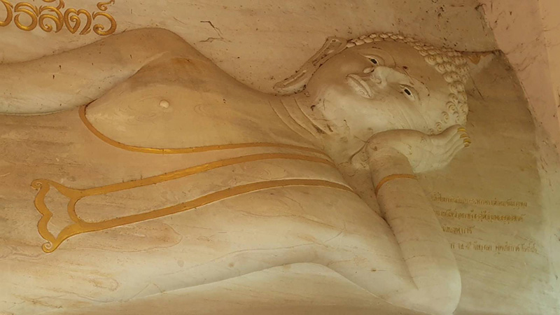 หลังจากนั้นยังมีการบูรณะ และได้ให้ช่างฝีมือพื้นบ้านแกะสลักก้อนหินตามแนว หน้าผา บนเขา และได้แกะสลัก พระพุทธรูป นอนตะแคงซ้ายหรือปางไสยาสน์ หรือพระนอนปางภาโภคีไสยาสน์ ซึ่งเป็นแผ่นดินติดหน้า ด้วยหินก้อนเดียว ที่ใหญ่ที่สุดหนึ่งเดียวในล้านนา