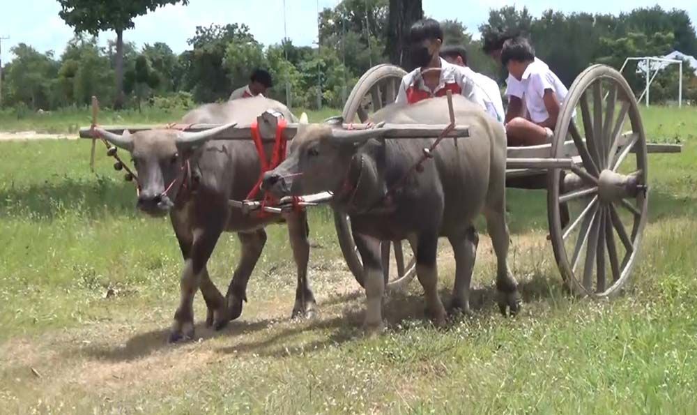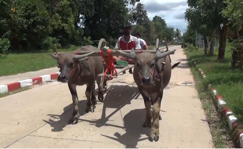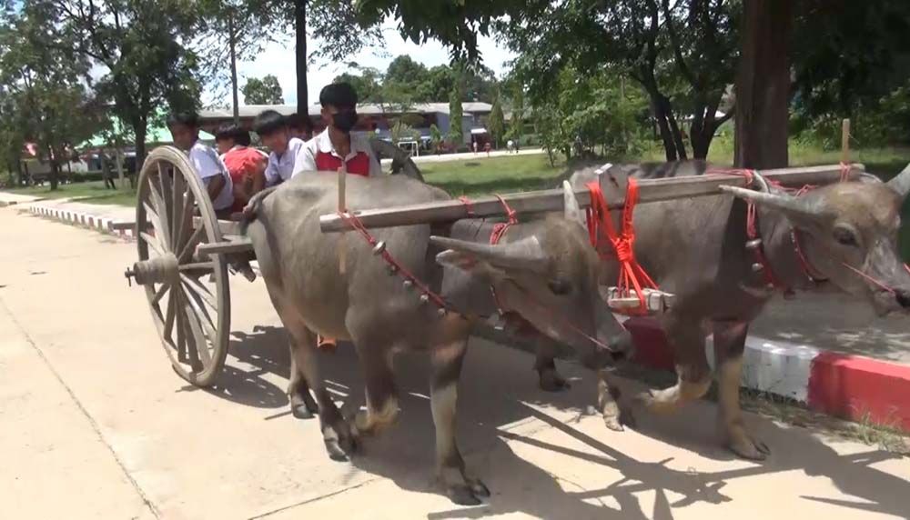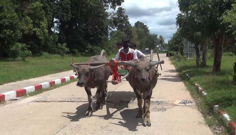 ฮือฮา"น้องแต้ม" นักเรียน ม.4 ที่บุรีรัมย์ขี่ควายเทียมเกวียนไปร.ร.แทนจยย.หวังประหยัดค่าน้ำมัน ทั้งสืบสานอนุรักษ์วิถีชีวิตชาวนาดั้งเดิมไม่ให้สูญหาย เจ้าตัวบอกไม่อายแต่กลับภูมิใจที่ได้ช่วยครอบครัวแบ่งเบาภาระ ทั้งยังมีรายได้จากการรับฝึกวัว ควายเทียมเกวียนและแห่ตามงานเดือนละหลักหมื่น ตาเผยทั้งหมู่บ้านเหลือครอบครัวเดียวที่ยังใช้วัว-ควายเทียมเกวียนในการดำรงชีวิต