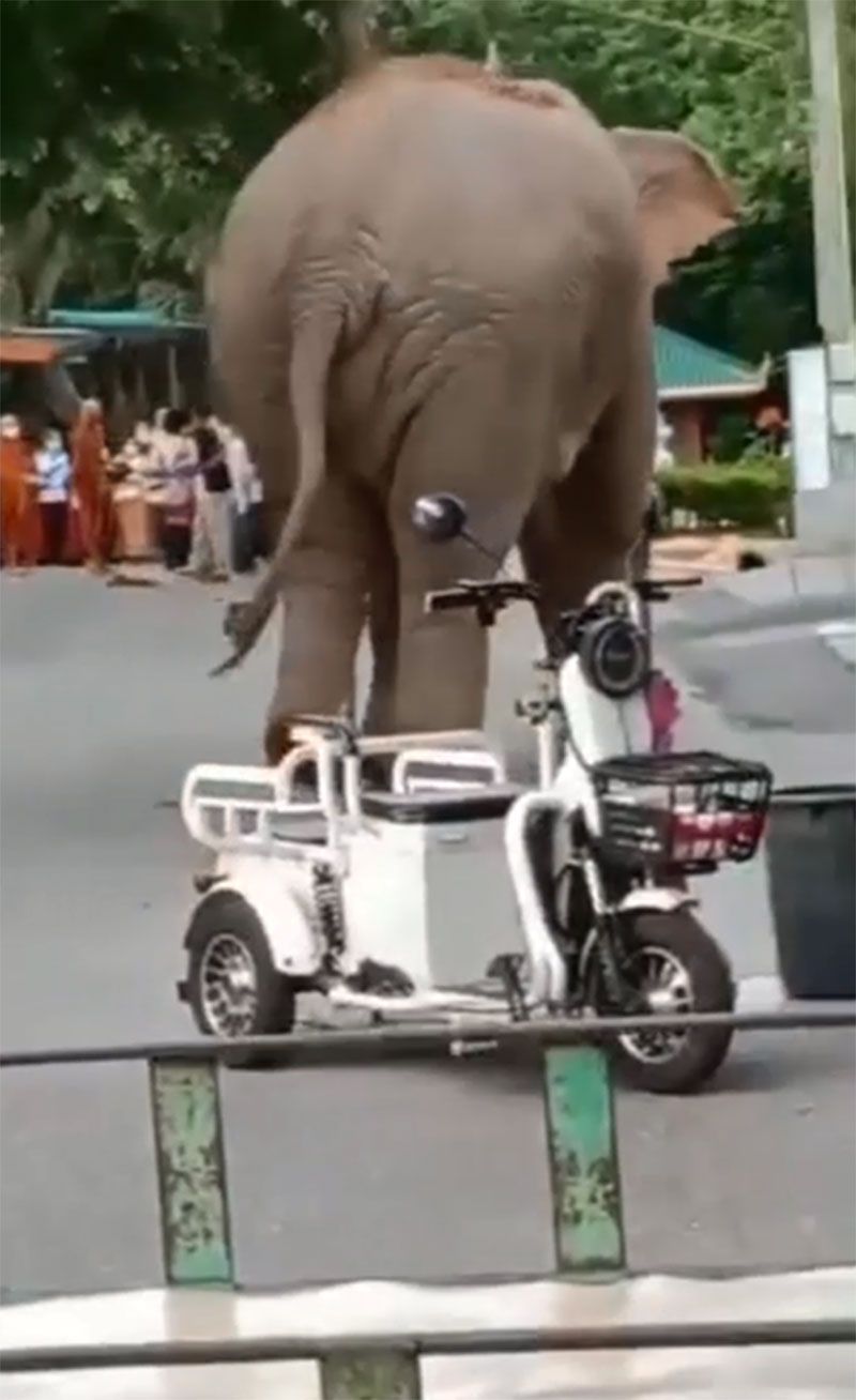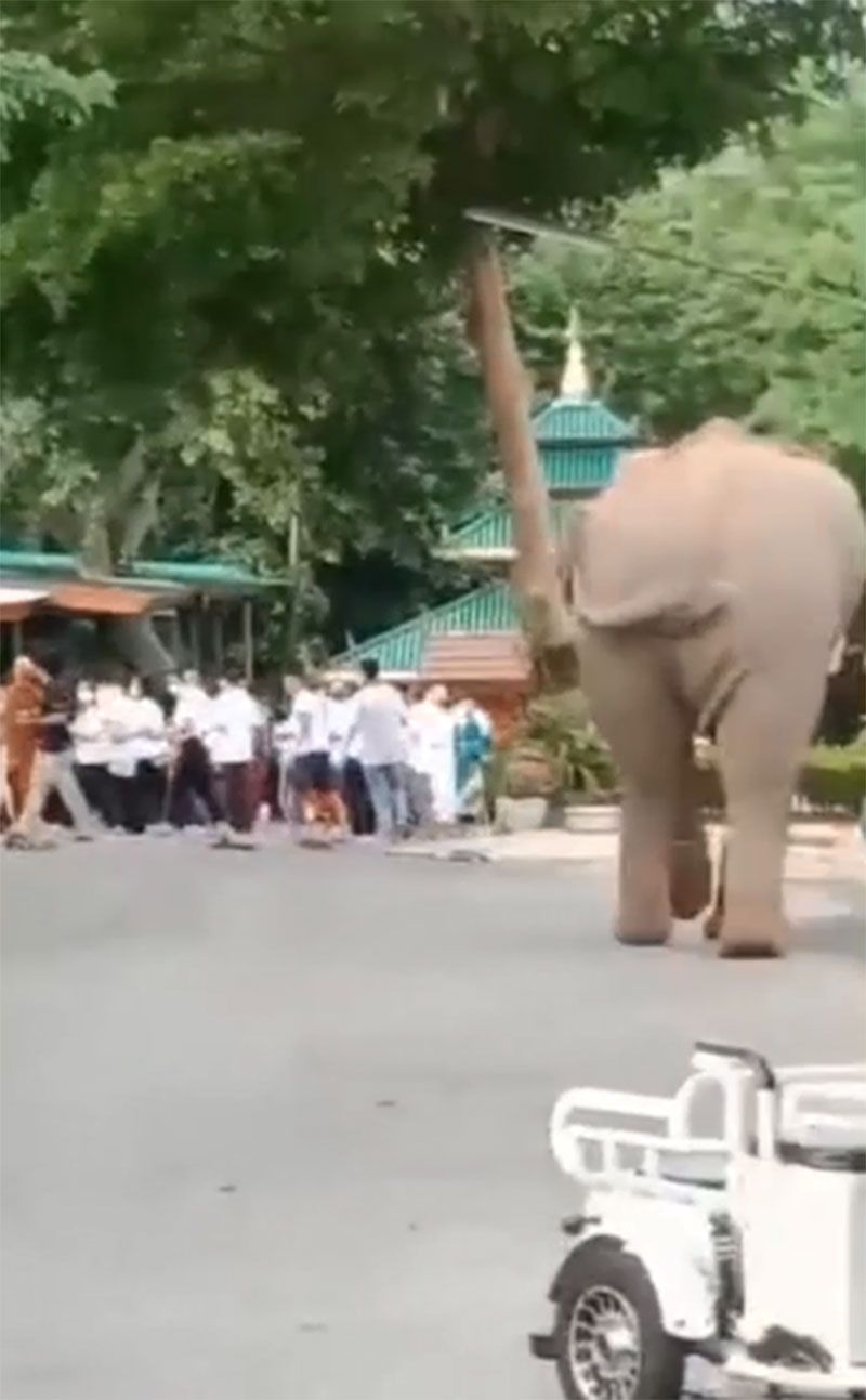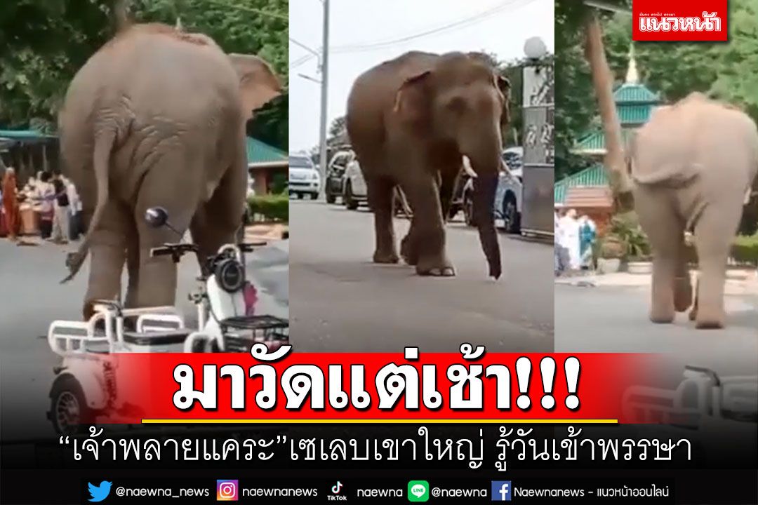 'เจ้าพลายแคระ'เซเลบประจำเขาใหญ่ มาวัดแต่เช้าทำบุญเข้าพรรษา (คลิป)