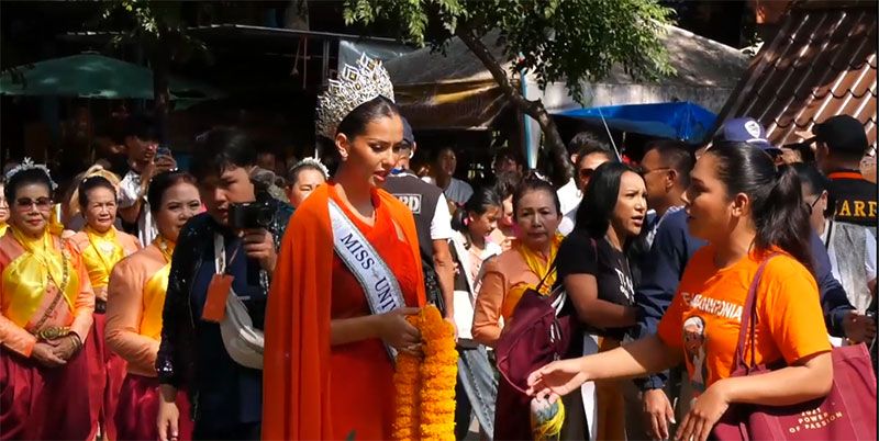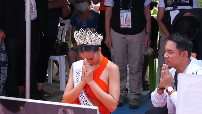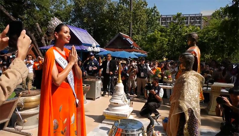 3 กันยายน 2566 ที่วัดศาลาลอย อำเภอเมือง จังหวัดนครราชสีมา แอนโทเนีย โพซิ้ว Miss Universe Thailand 2023 พร้อมด้วย นลิน ฉัตรณลิณ โชติจิรวราฉัตร รองอันดับ 3 และณิชา ณิชา พูลโภคะ รองอัน 4 Miss Universe Thailand 2023 เดินทางมากราบสักการะ เจดีย์บรรจุอัฐิท้าวสุรนารี หรือคุณย่าโม เพื่อความเป็นสิริมงคล พร้อมทั้งเข้าไปกราบพระในโบสถ์เก่าแก่ อายุ 197 ปี รวมไปถึงไหว้สิ่งศักดิ์สิทธิ์อยู่ภายในวัด