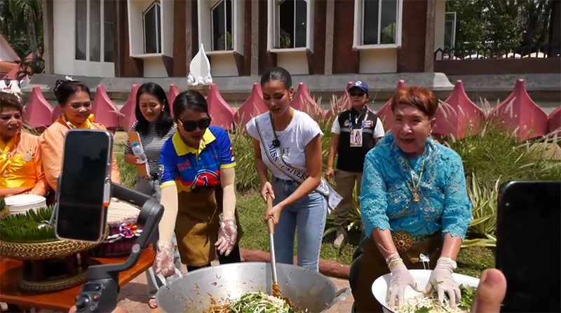 โดยมีประชาชนผู้ที่เดินทางมาทำบุญที่วัดขอถ่ายรูปเพื่อเป็นที่ระลึก หลังจากนั้นได้มีการผัดหมี่โคราชโชว์ต่อหน้าแฟนคลับ.012
