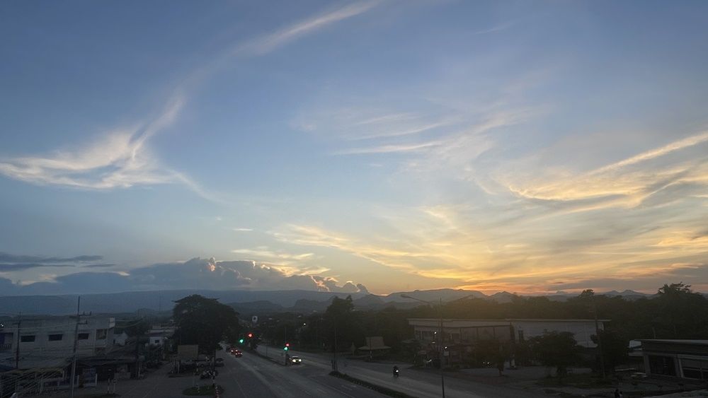นี่เป็นภาพความสวยงามในช่วงการเปลี่ยนแปลงฤดูฝนไปยังฤดูหนาว เมื่อพระอาทิตย์จะอัสดงในยามเย็น ท้องฟ้าสีทอง สลับสีสันที่สวยงามบนจุดชมวิวสวย หน้าโรงเรียนศรีสงคราม อำเภอวังสะพุง จังหวัดเลย ที่สามารถมองเห็นวิวของภูหลวง ซึ่งเป็นเทือกเขาใหญ่ เขียวขจีในฤดูฝน พร้อมชมพระอาทิตย์ตกในช่วงวันที่เปลี่ยนแปลงฤดูกาล ซึ่งบ่งบอกว่าอีกไม่กี่วันแล้วจะเข้าสู่ฤดูหนาว - 003