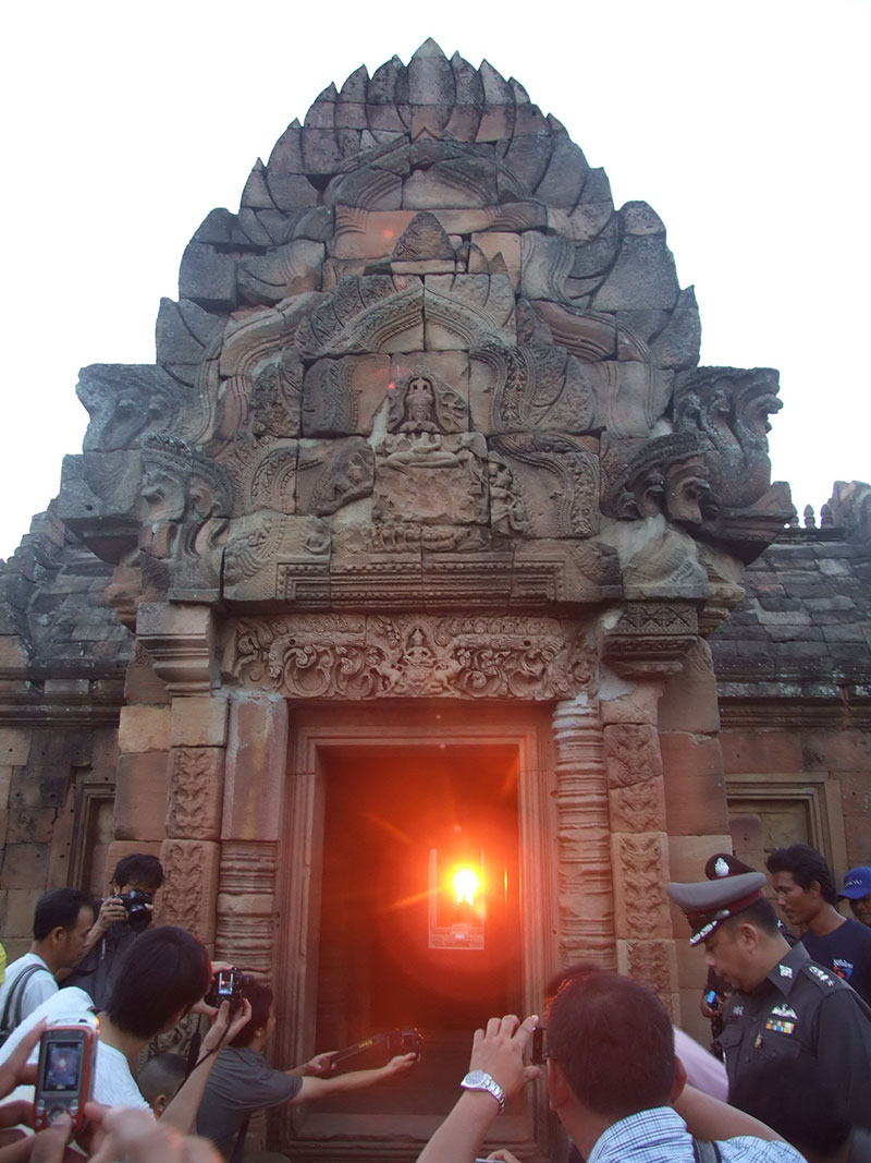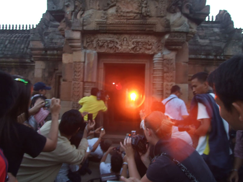 “นับเป็นปรากฏการณ์ที่มหัศจรรย์ โดยปราสาทพนมรุ้งเป็นเทวสถานในศิลปกรรมขอมแห่งเดียวในโลกที่มีสิ่งมหัศจรรย์ทางธรรมชาติ ที่เป็นการผสมผสานภูมิปัญญาด้านสถาปัตยกรรม ที่มีการก่อสร้างปราสาท ที่ให้แสงอาทิตย์ส่องตรง 15 ช่องประตู ผ่านศิวะลึงค์ ที่เปรียบเสมือนองค์พระศิวะ ซึ่งตั้งอยู่ภายในปรางค์ประธานของปราสาทพนมรุ้ง ที่เปรียบเสมือนเขาไกรลาส บนสรวงสวรรค์” ปชส.บุรีรัมย์ กล่าว.012