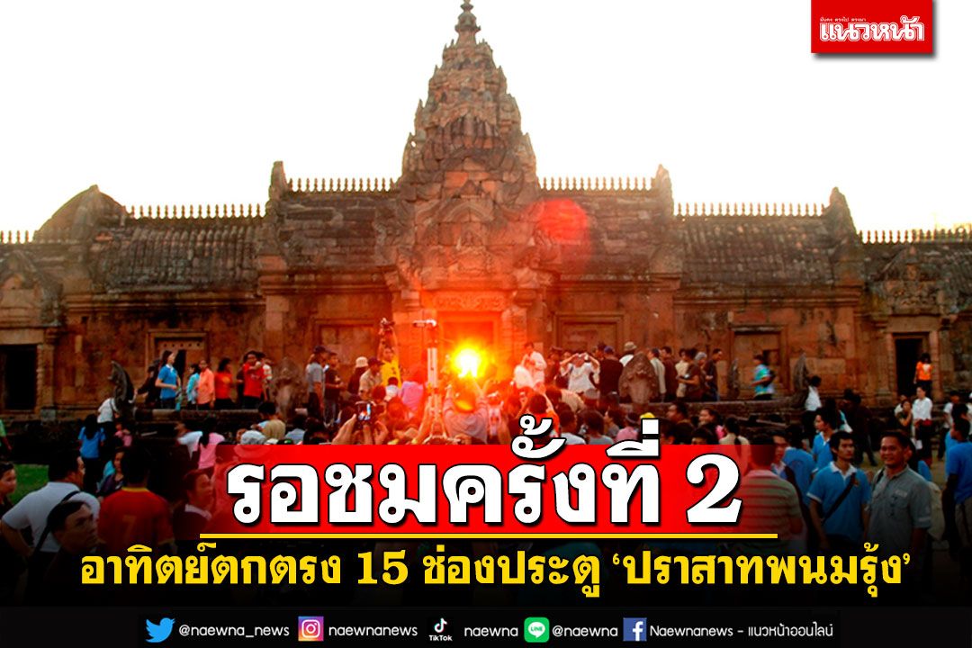 ทั้งนี้ในแต่ละปีจะมีปรากฏการณ์มหัศจรรย์ดวงอาทิตย์ตกลอดผ่านตรง 15 ช่องประตูปราสาทพนมรุ้ง 2 ครั้ง ในระหว่างวันที่ 5-7 มีนาคม และระหว่างวันที่ 5-7 ตุลาคม และดวงอาทิตย์จะขึ้นลอดผ่านตรง 15 ช่องประตูปราสาทพนมรุ้ง อีก 2 ครั้ง ในวันที่ 3-5 เมษายน และวันที่ 8-10 กันยายน ของทุกปี