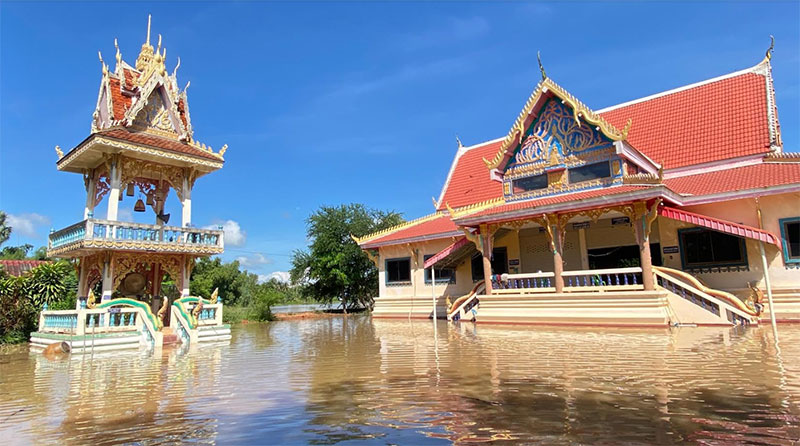 ชาวบ้านต้องหุงข้าว ประกอบอาหารไปถวายพระ สามเณรภายในวัด ได้มีภัตราหารฉัตรเช้า และภัตราหารเพล ในขณะที่ชาวบ้านที่ประกอบอาชีพเลี้ยงหมู มวลน้ำจำนวนมากได้ไหลเข้าท่วมคอกหมู เจ้าของได้ขอแรงเพื่อนบ้านใกล้เคียง ให้มาช่วยรีบขนย้ายหมูที่เลี้ยงไว้กว่า 20 ตัว หนีน้ำออกจากคอก นำไปเลี้ยงที่อื่นที่น้ำท่วมไม่ถึงอย่างทุลักทุเล และที่คอกเลี้ยงหมูที่สูงค่อนข้างมีน้อยมีจำกัดพื้นที่ และหมูบางส่วนจำเป็นต้องยอมขายขาดทุน ดีกว่าปล่อยให้หมูในคอกจมน้ำตาย