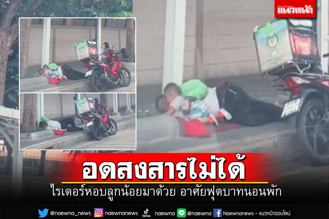 เห็นแล้วก็อดสงสารไม่ได้ เรื่องราวดีๆจากผู้ใช้ติ๊กต็อกชื่อ bezineshop เผยคลิปบังเอิญไปพบไรเดอร์ที่กำลังนอนพักอยู่บริเวณริมฟุตบาทข้างถนน พร้อมมีลูกน้อยมาด้วย โดยเจ้าของคลิปนี้ได้ระบุแคปชั่นไว้ว่า " ต้นทุนชีวิตที่ต่างกัน แต่กำลังใจดวงน้อยๆ ที่ทำให้พอมีแรงสู้ต่อ เห็นแต่ในคลิป แต่เจอเข้าจริงๆ อดช่วยไม่ได้ โตไปเป็นเด็กดีนะคะ #มีไม่มากแต่อยากให้ #ต้นทุนชีวิตคนเราไม่เท่ากัน #ให้กําลังใจ #ไรเด้อส่งอาหารพร้อมลูกติด #เซ็นทรัทลาดพร้าว "
