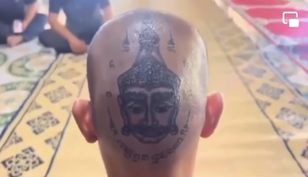 พระพยอม กล่าวอีกว่า ธรรมดาสักหน้าอก สักแขน สักขา สักชื่อเป็นพ่อเป็นแม่ ก็ยังไม่น่าเกลียด สักแบบนี้น่าจะเป็นรายแรก สักบนหัวที่เป็นยันต์เป็นอะไรมีเยอะ แต่สักเป็นรูปหัวฤาษีเป็นรูปหัวอะไร พวกประเภทไปทางสักของศักดิ์สิทธิ์ น่าจะเป็นองค์แรกที่ได้เห็น - 003