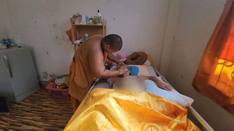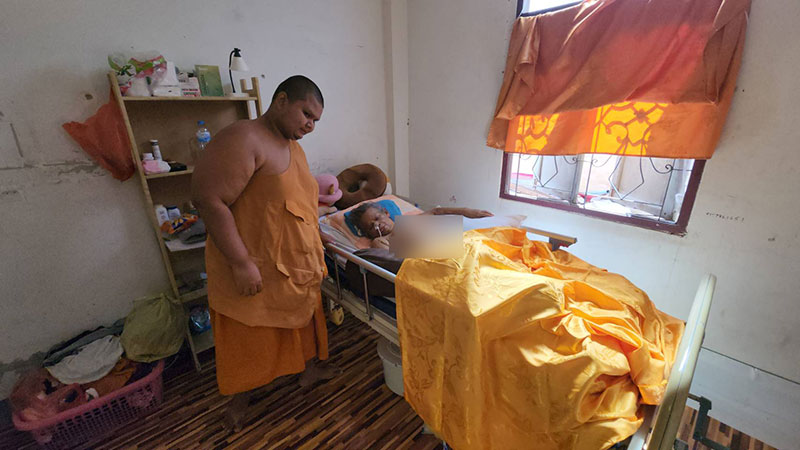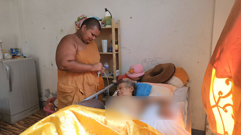 พระยอดกตัญญู วัย 22 ขออนุญาตเจ้าอาวาส-เจ้าคณะอำเภอ พาแม่ป่วยติดเตียงมาดูแลที่กุฎิ ต้องคอยให้อาหารทางสายยาง เปลี่ยนแพมเพิร์ส ที่วัดสุทธาวาส จ.ชลบุรี