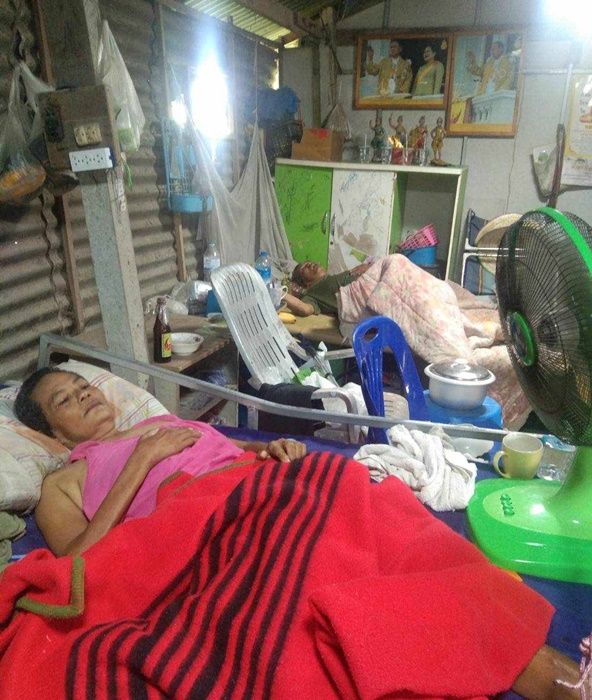 ภายในบ้านมีนางสมร วงษ์วิไล อายุ 53 ปี เจ้าของบ้านนอนป่วยเป็นอัมพฤกษ์ มีเพื่อนบ้านต้องมาช่วยพยุงให้ลุกขึ้นนั่ง เด็กหญิงน้อย (นามสมมุติ) อายุ 10 ปี ซึ่งมีอาการทางสมองสมาธิสั้น และนายเทิดศักดิ์ จีนโก๊ว อายุ 55 ปี สามีของนางสมร มีแผลติดเชื้อที่ขาทั้งสองข้าง ทำให้ขาบวมเดินไม่ได้ ซึ่งเพื่อนบ้านที่ช่วยนำส่งโรงพยาบาล ทราบว่า นายเทิดศักดิ์ จะต้องนอนพักรักษาตัวที่โรงพยาบาลนานหลายวัน เนื่องจากแพทย์จะต้องทำการขูดเอาเนื้อที่ตายบริเวณตั้งแต่ข้อเท้าขึ้นไปจนหัวเข่าออกทั้งสองข้างจากอาการติดเชื้ออย่างรุนแรงจนขาเน่า