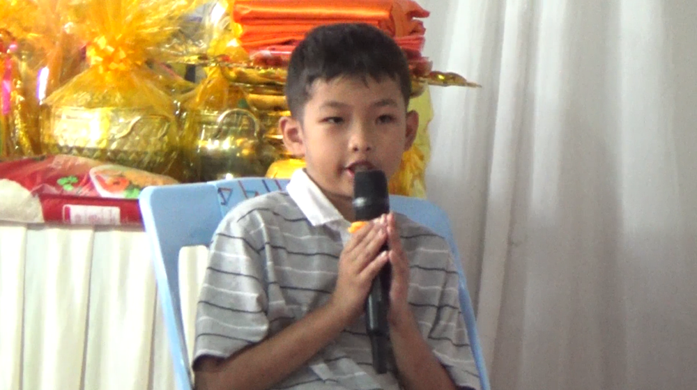 โดย ด.ช.พีระพัชร์ ทองชู หรือน้องอาเธอร์ กล่าวว่า ตนทำได้ตั้งแต่อยู่ ป.2-ป.3 ตอน ป.3 พ่อเริ่มปล่อยมือแล้ว และเริ่มท่องบทสวดพร้อมพ่อโดยเริ่มทำได้ตั้งแต่มีคนตาย สวดมนต์ กล่าวคำถวาย บทสวดบางทีก็ท่องพร้อมพ่อ บางทีก็ฝึกเองสูงสุดรับงานได้คืนละ 7 งาน บางงานให้ 700 บาท บางงานให้ 100 บาท 7 งานก็ 700 เดือนหนึ่งมีรายได้น่าจะ 2,000-3,000 บาท โดยเอาเงินส่วนหนึ่งเอาไปเป็นทุนการศึกษา ชอบอาชีพนี้ ทำแล้วรู้สึกดี อิ่มบุญ ต่อไปก็จะทำกิจการโลงตามพ่อ เห็นศพแล้วไม่กลัว ไม่ค่อยกลัว บางศพก็น่ากลัวนิดหน่อย ส่วนศพที่กลัวมากที่สุดคือศพรถชน แขนขาหัก เลือดออกเยอะ