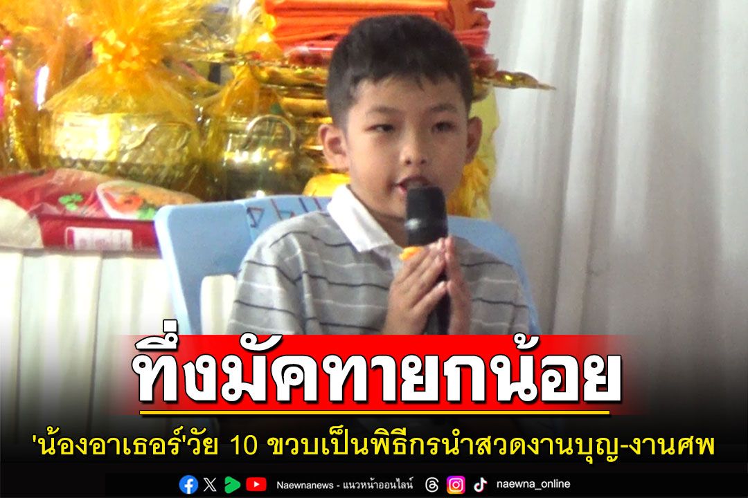 น้องอาเธอร์ หนูน้อยวัย 10 ขวบนักเรียนชั้น ป.4 โรงเรียนอนุบาลกันตังศึกษาจังหวัดตรังเป็นพิธีกรนำสวดในงานศพ งานบุญ งานบวชได้ทุกงาน หลังตามคุณพ่อไปช่วยงานจนซึ้งในรสพระธรรม ด้านคุณพ่อเผยน้องมีเงินเก็บเกือบ 40,000 บาทในช่วง 2 ปีที่รับงานนอกเวลาเรียน แถมไม่กลัวศพและสานฝันเดินตามรอยพ่อในการดูแลธุรกิจขายโลงศพ