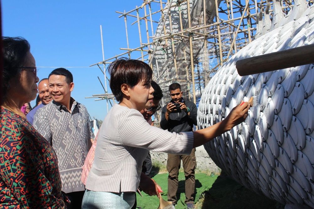 เมื่อวันที่ 20 ธันวาคม 2566 ที่ผ่านมาที่อ่างเก็บน้ำธวัชชัย อำเภอธวัชบุรี จังหวัดร้อยเอ็ด นายทรงพล ใจกริ่ม ผู้ว่าราชการจังหวัดร้อยเอ็ด พร้อมด้วยพระครูปลัดสุขวัฒน์ ปภสฺสโร (พระอาจารย์ต้อม) วัดท่าสะแบง นำทีมหัวหน้าส่วนราชการ ทั้งภาครัฐ ภาคเอกชน และประชาชน ประกอบพิธีลงสีองค์พญาศรีสุทโธนาคราช เพื่อความสิริมงคลในการก่อสร้าง ซึ่งดำเนินการไปแล้วกว่า 85%