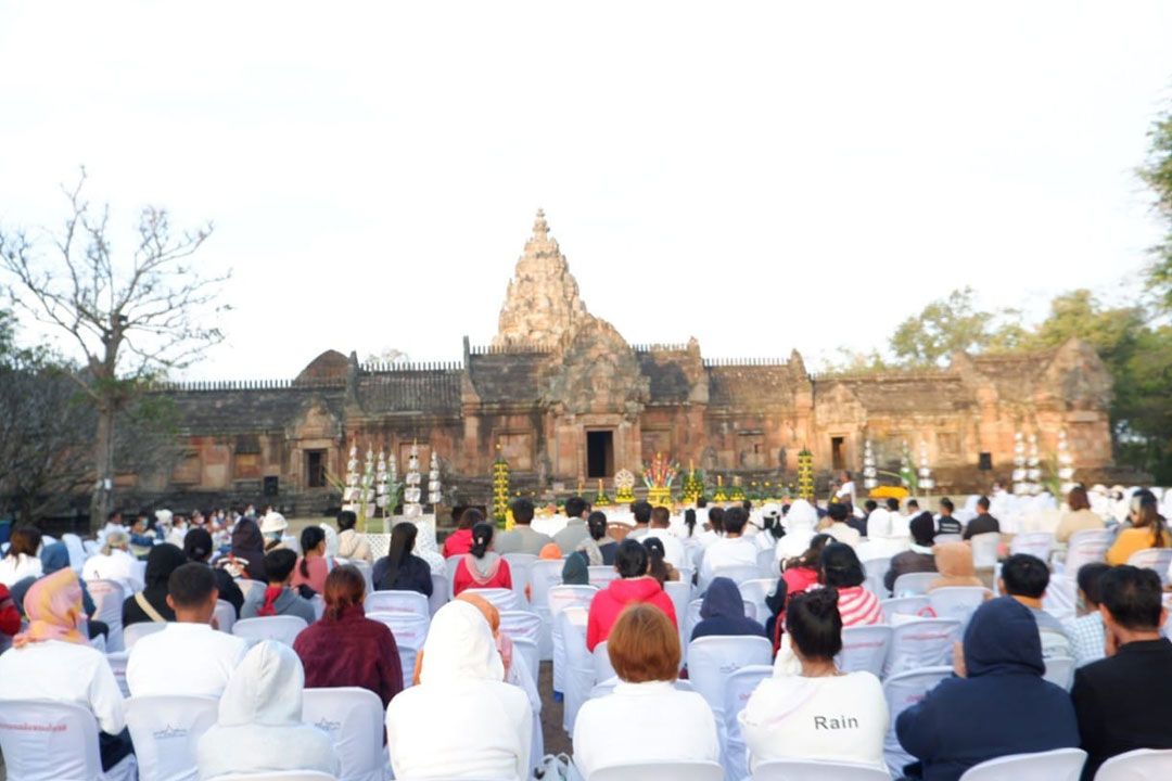 พิธีบวงสรวง สักการะสิ่งศักดิ์สิทธิ์ หน้าปราสาทพนมรุ้ง พร้อมขอพร และร่วมรับพลังสุริยเทพแสงอาทิตย์แรกของปีศักราชใหม่ 2567 บนยอดเขาพนมรุ้ง เพื่อความเป็นสิริมงคลและพลังอันยิ่งใหญ่ให้เกิดกับชีวิตของตนเองและครอบครัวในทุกๆ ด้านตลอดปี 2567 และตลอดไป