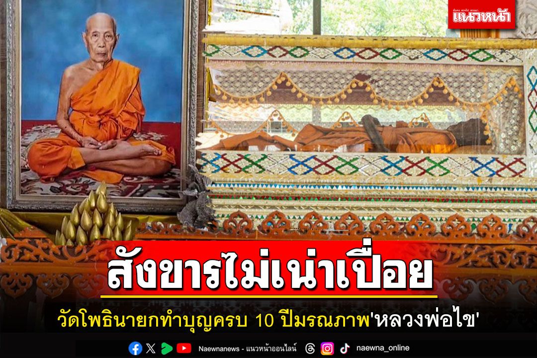 ทำบุญครบ 10 ปีมรณภาพ 'หลวงพ่อไข' อดีตเจ้าอาวัดโพธินายก ตำบลนครนายก อำเภอเมืองนครนายก แต่ 'สังขารไม่เน่าเปี่อย'
