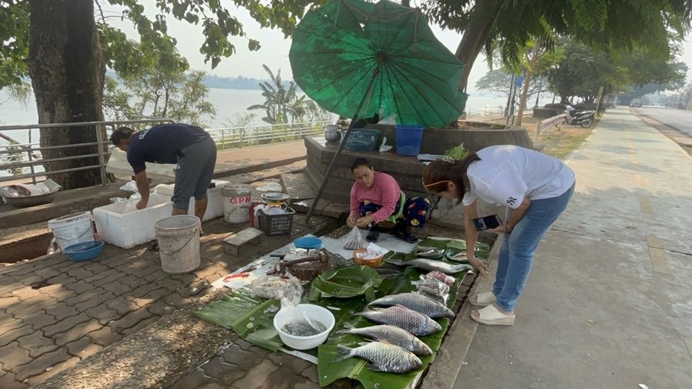 ส่วนนายศรีวิไล เนานงค์ อายุ 52 ปี ชาวประมงพื้นบ้าน ชุมชนหนองแสง เปิดเผยว่าจากกรณีน้ำโขงลดลง ทำให้บริเวณหน้าโบสถ์นักบุญอันนา มีปริมาณน้ำไม่ถึงเมตร จึงเป็นปัญหาต่อการหาปลา เพราะจับปลาใหญ่ไม่ได้ ที่เห็นวางขายอยู่นี่ เป็นปลาที่ซื้อมาจากชาวประมง ต.เวินพระบาท อ.ท่าอุเทน จ.นครพนม เพราะบริเวณนั้นมีทั้งน้ำลึกและโขดหินจำนวนมาก ปลาใหญ่จึงไปอาศัยอยู่ที่นั่นชุกชุมกว่าที่อื่น ประการสำคัญน้ำโขงไม่ได้เป็นเหมือนอดีต เพราะมีการสร้างเขื่อนขวางลำน้ำ จำนวนปลาก็เริ่มลดน้อยลง