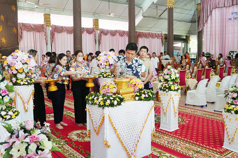 โดย พระครูสิทธิธรรมวิภัชเจ้าอาวาสวัดราชบูรณะ เป็นประธานฝ่ายสงฆ์ นำคณะสงฆ์และ นางเปรมฤดี ชามพูนท นายกเทศมนตรีนครพิษณุโลกเป็นประธานฝ่ายฆราวาส นำพุทธศาสนิกชน ร่วมกันสรงน้ำพระบรมสารีริกธาตุ ที่อัญเชิญมาประดิษฐานบนแท่น บนศาลาการเปรียญ โดยทางวัดจะเปิดโอกาสให้ประชาชนสามารถมาสรงน้ำพระบรมสารีริกธาตุ เพื่อความเป็นสิริมงคลช่วงวันขึ้นปีใหม่ไทยและเทศกาลสงกรานต์ ได้ตั้งแต่วันนี้ไปจนถึงวันที่ 16 เมษายนนี้