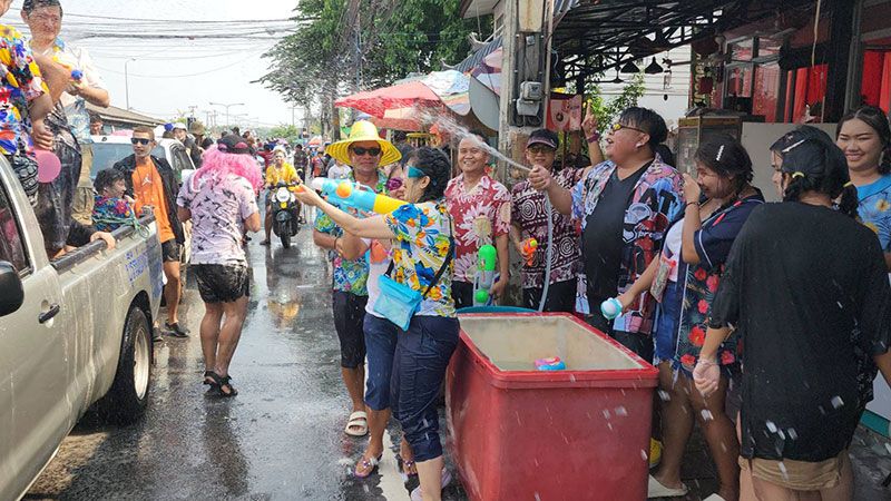 บรรยากาศสงกรานต์บุรีรัมย์ อัญเชิญพระพุทธสิหิงค์แห่รอบเมือง วัยรุ่นหนุ่มสาวเล่นสาดน้ำคึกคัก