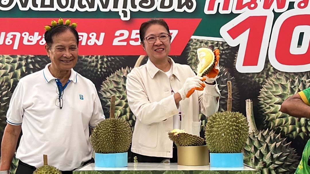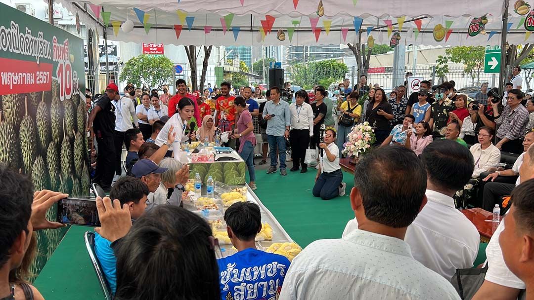 นายประพัฒน์ สราญธรรม เจ้าของล้งทุเรียนส่งออกรายใหญ่ของจังหวัดจันทบุรี กล่าวว่า จุดประสงค์ของตนคือทำทุเรียนส่งออกประเทศจีน ซึ่งทุเรียนประเทศไทยอร่อยมากมาก ไม่แพ้ทุเรียนประเทศอื่นเลย จึงอยากให้พี่น้องคนไทยชาวกรุงเทพฯและเมืองทองธานี ได้กินทุเรียนรสชาติที่อร่อยและราคาที่เหมาะสมกับการซื้อ ซื้อทุเรียนของตนราคาตรงจากสวนไม่ผ่านใคร อยากให้ทุกคนได้รู้ว่าทุเรียนของตนอร่อยแค่ไหน รับประทานแล้วรู้สึกเป็นอย่างไร วันต่อไปจะเอามาจำหน่าย ให้กับพี่น้องประชาชนในเมืองทองธานี ได้รับประทานในราคาที่ย่อมเยาว์และอร่อยที่สุด โดยจะนำมาจำหน่ายตลอดทั้งปี และจะเปิดตรงนี้เป็นศูนย์บัญชาการใหญ่ของทุเรียนทั่วประเทศไทยตนจะนำเอาไว้ที่นี่ วันนี้ราคาจำหน่ายทุเรียนพันธุ์หมอนทองกิโลละ 150 บาท ที่จันทบุรีก็ราคา 150 บาทเหมือนกัน เราภูมิใจที่ได้เอาทุเรียนให้ชาวเมืองทองได้กิน ทั้งนี้ทุเรียนเวียดนามกับทุเรียนประเทศไทยมีความแตกต่างกัน คือเรื่องของรสชาติความอร่อย ไม่ได้ว่าของเขาไม่ดี ของเวียดนามก็ดีแต่ของไทยยังไงก็ต้องเป็นเบอร์ 1 ในหลายประเทศชอบทุเรียนของประเทศไทย มีความอร่อยรสชาติดีคุณภาพมาตรฐาน ของเวียดนามเขาก็ดีแต่ความอร่อยแตกต่างกันตรงนี้ ซึ่งคนจีนนิยมทุเรียนของไทยมากกว่า