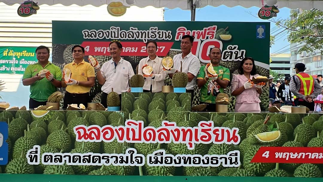 จ.นนทบุรี เมืองทองแทบแตก ชาวบ้านนับหมื่นแห่เข้าแถว กินทุเรียนฟรี 10 ตัน
