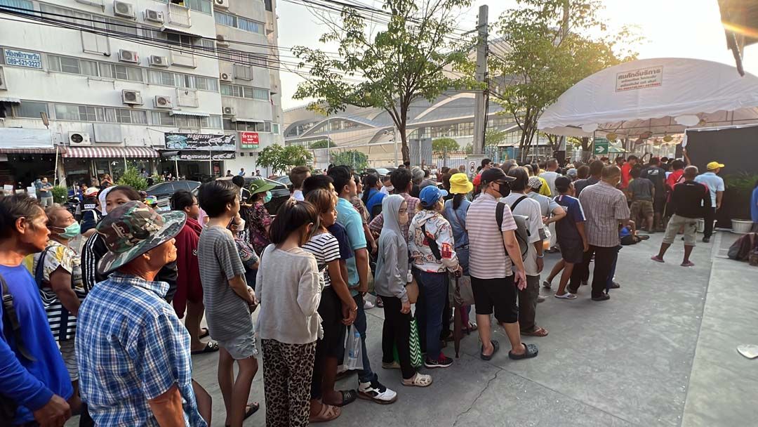 ขณะเดียวกันมีประชาชนกว่า 12,000 คน มาคอยรอรับทุเรียนแจกฟรีมีทั้งเด็ก ผู้ใหญ่ชาย หญิง คนชรา นอกจากนี้ยังมีประชาชนเดินทางมาจากจังหวัดใกล้เคียง รวมถึงชาวต่างชาติก็มาต่อคิวเข้าแถวรอรับทุเรียนฟรีด้วยเช่นกัน โดยแถวมีความยาวเกือบ 1 กิโลเมตร ซึ่งระหว่างที่ประชาชนกำลังเข้าเเถวรอรับทุเรียนอยู่นั้น เเสงแดดได้ส่องเข้ามาภายในโดมประกอบกับอากาศที่ร้อนอบอ้าว จึงทำให้มีคนเป็นลมจำนวน 4 ราย ซึ่งเจ้าหน้าที่กู้ชีพได้ทำการปฐมพยาบาลเบื้องต้น จนสาทารถกลับมายืนรอรับทุเรียนได้ตามเดิม คาดว่าจะทำการแจกทุเรียนแล้วเสร็จภายในเวลา 20.00 น.