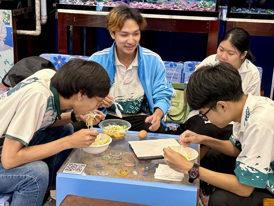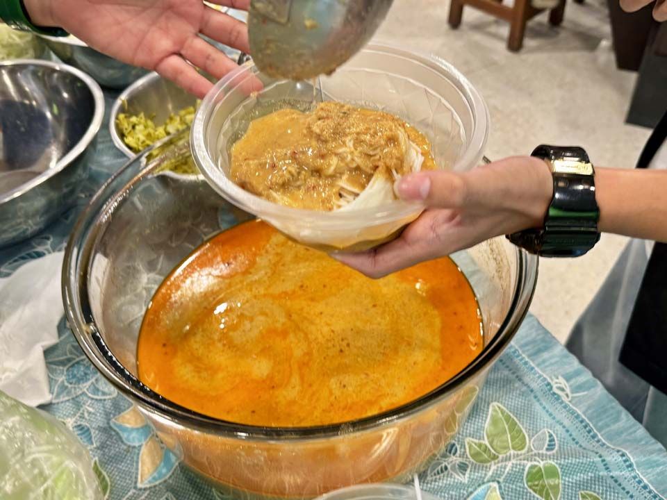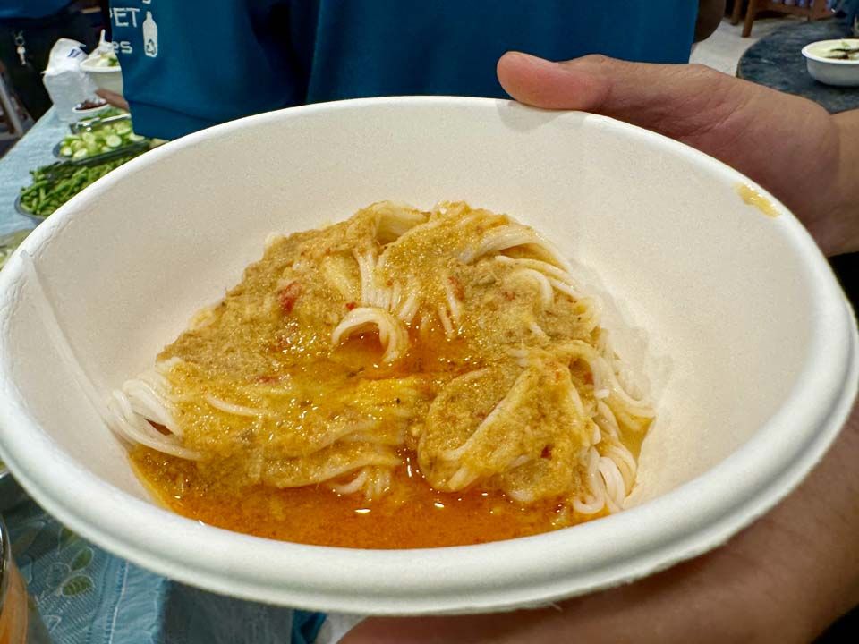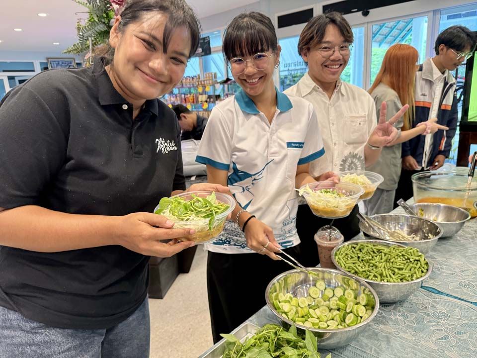 วานนี้ (10 กรกฎาคม 2567) ภาควิชาผลิตภัณฑ์ประมง จัดกิจกรรมชวนชิมเมนูจากปลาหมอคางดำ โดย อ.ดร.สหภพ ดอกแก้ว ภาควิชาเพาะเลี้ยงสัตว์น้ำ ได้นำเสนอหนึ่งใน “เมนูกู้แหล่งน้ำ” นำปลาหมอคางดำมาปรุงเป็นอาหารเมนูคุ้นเคย “ขนมจีนน้ำยาปลาหมอคางดำ” ซึ่งอุดมด้วยสมุนไพรไทยและคุณค่าทางโภชนาการโปรตีนจากเนื้อปลาให้ผู้สนใจได้ทดลองชิม ร่วมกับการบอกเล่าเรื่องราวของปลาหมอคางดำ เพื่อสร้างการรับรู้และความเข้าใจเกี่ยวกับปลาชนิดนี้ให้มากขึ้น ซึ่งเมนูน้ำยาปลาหมอคางดำ ได้รับการตอบรับจากบุคลากร นิสิต และบุคคลทั่วไปเป็นอย่างดี และเสียงสะท้อนส่วนใหญ่บอกว่าก็ไม่ต่างจากน้ำยาปลาปกติ