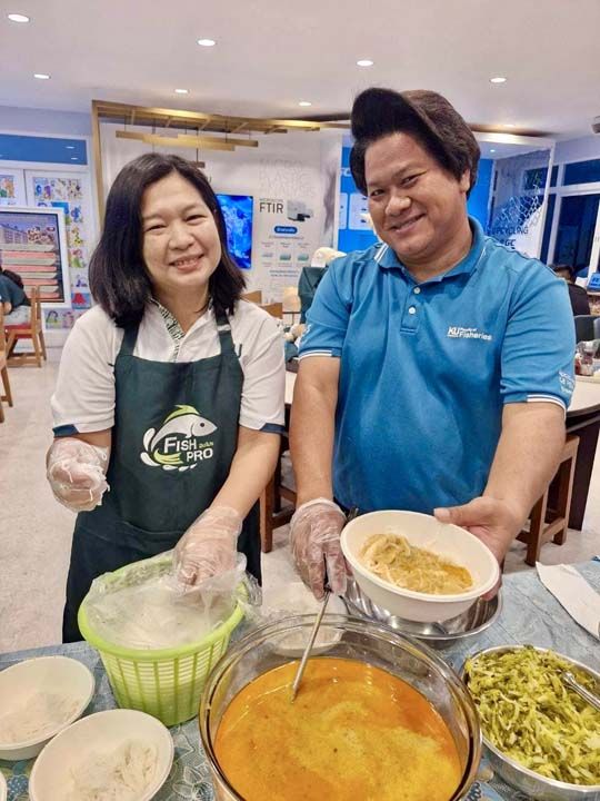‘ภาควิชาผลิตภัณฑ์ประมง’คณะประมง มหาวิทยาลัยเกษตรศาสตร์ แนะนำเมนูเด็ด‘ขนมจีนน้ำยาปลาหมอคางดำ’ทำง่าย ด้วยภูมิปัญญาชาวบ้าน เชิญชวนร่วมด้วยช่วยกัน‘กู้แหล่งน้ำ’ โดยนำปลาหมอคางดำมาปรุงเป็นอาหาร อร่อย ได้คุณค่าทางโภชนาการโปรตีนจากเนื้อปลา