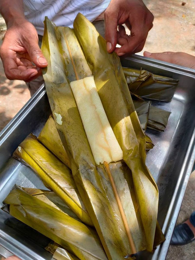 กลุ่มแม่บ้านที่นี่ยังคงรักษาภูมิปัญญาการหุงข้าวด้วย 'ใบยี่เร็ด' หรือที่เรียกอีกชื่อว่า 'ใบเหร็ด' เอาไว้ วิธีนี้มีที่มาจากสมัยก่อน เมื่อชาวบ้านออกไปหาของป่า พวกเขาจะพกแค่ข้าวสารติดตัวไป แล้วใช้ใบยี่เร็ดห่อข้าว จากนั้นใช้กระบอกไม้ไผ่แทนหม้อหุงข้าว