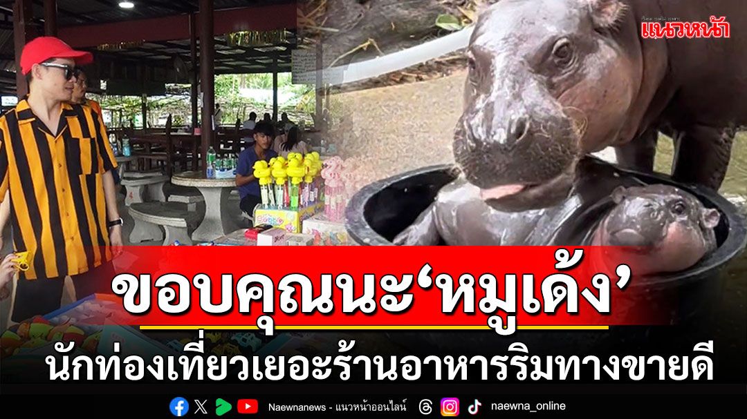 16 ตุลาคม 2567 ตามที่กระแสหมูเด้งฟีเวอร์ ทำให้ FC น้องหมูเด้ง แห่กันกันเข้ามาเพื่อชื่นชม ความน่ารักของน้องหมูเด้งเจ้าฮิปโปแคระ เที่ยว ส่งผลดีต่อ ร้านอาหารตามสั่งรินทางและร้านขายของฝากทางเข้าสวนสัตว์เปิดเขาเขียว ต.บางพระ อ.ศรีราชา จ.ชลบุรี