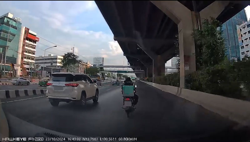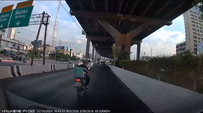 24 ต.ค.67 น.ส.เอ แจ้งเตือนภัยผ่านแนวหน้าออนไลน์ เนื่องจากไรเดอร์ค่ายหนึ่งที่ขับรถปาดหน้าในช่องทางที่ห้ามขับรถจักรยานยนต์ และไม่สวมหมวกนิรภัย ทั้งนี้ยังมีพฤติกรรมไม่สุภาพ จอดรถข้างหน้าด่า