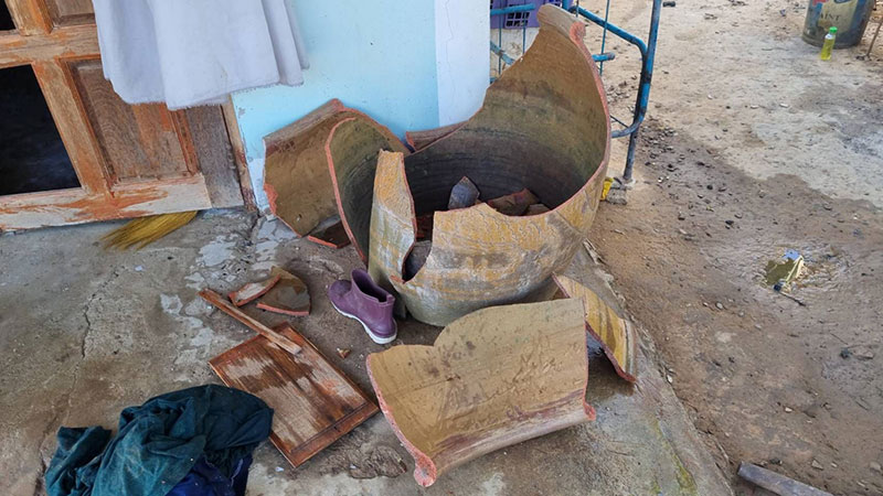 จาการสอบถามนางรุ่งอรุณ อายุ 63 ปี แม่ของนายสมบูรณ์ เล่าทั้งน้ำตาว่า ลูกชายไม่มีประวัติเสพยาแต่ชอบดื่มเหล้าดื่มหนักมาก จนมีอาการทางจิตก็เคยส่งรักษาพออาการเริ่มดีขึ้น จึงให้บวชเป็นพระที่วัดแห่งหนึ่งใน อ.บ้านกรวด ก็บวชอยู่หลายพรรษา กระทั่งช่วงเดือนตุลาคมปี 2567 ที่ผ่านมา พระลูกชายก็มีอาการคลุ้มคลั่งคาดว่าน่าจะไม่กินยา ซึ่งถูกนำตัวส่ง รพ. กระทั่งวันที่ 9 ธันวาคม 2567 จึงได้สึกจากการเป็นพระแล้วออกมาอยู่บ้าน พอกลับมาอยู่บ้านก็จะซื้อเหล้ามากินแทบทุกวัน พอเมาก็จะชอบอาละวาดโวยวาย และเคยทำลายข้าวของพังเสียหายมาแล้วครึ่งหนึ่ง แต่ไม่เสียหายมากเท่าครั้งนี้จึงจำเป็นต้องแจ้งเจ้าหน้าที่มาช่วยพาลูกไปส่งรักษาที่ รพ.